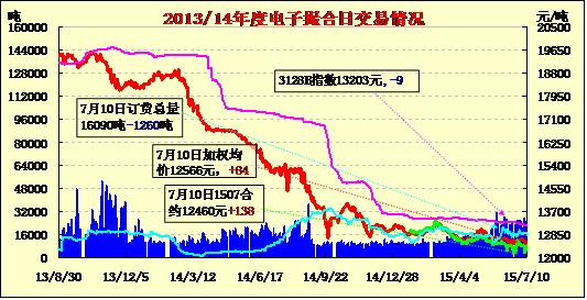 7月10日電子撮合交易成交24710噸,較上一交易日增加2470噸。訂貨量減少1260噸,累計(jì)訂貨16090噸。交易合約高開高走,全線收漲。