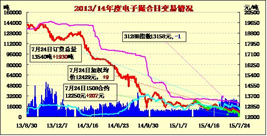 7月24日電子撮合交易成交18160噸,較上一交易日減少3690噸。訂貨量增加1930噸,累計(jì)訂貨13540噸。交易各合同高開,盤中窄幅整理,均價(jià)漲跌互現(xiàn)。近期新疆遭遇罕見高溫,局地高達(dá)45攝氏度,持續(xù)高溫或?qū)﹂_花期的棉花生長產(chǎn)生不利影響;這段時(shí)間,河北、山東及天津等地天氣不給力,先是大旱,再到7月下旬的大澇,棉花生產(chǎn)受到“摧殘 ”。