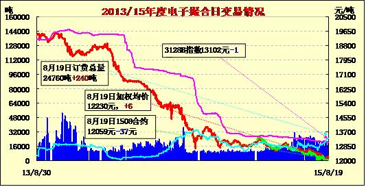 8月19日 電子撮合交易成交15410噸,較上一交易日減少3830噸。訂貨量增加240噸,累計(jì)訂貨24760噸。交易各合同開盤高低不一,盤中震蕩為主,各合同均價(jià)漲跌互現(xiàn)。現(xiàn)貨市場(chǎng)呈現(xiàn)調(diào)整走勢(shì),價(jià)格維持前期,成交不活躍,部分商家已久不走貨。全棉紗市場(chǎng)窄幅調(diào)整,整體成交量一般,且價(jià)格疲軟,多數(shù)為老客戶按單采購(gòu),紗廠也按單定產(chǎn)以控制庫(kù)存,后市觀望為主。