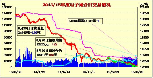 8月20日 電子撮合交易成交17680噸,較上一交易日增加2270噸。訂貨量減少120噸,累計訂貨24640噸。交易各合同開盤高低不一,盤中震蕩為主,各合同均價呈現(xiàn)普漲行情。儲備棉輪出成交低迷,兵團(tuán)棉花施壓市場,國內(nèi)棉花市場繼續(xù)弱勢。紡織企業(yè)采購隨用隨買;下游紗線市場淡季局面持續(xù),多數(shù)工廠全棉類開工僅5-6成,從量上看走貨不佳。