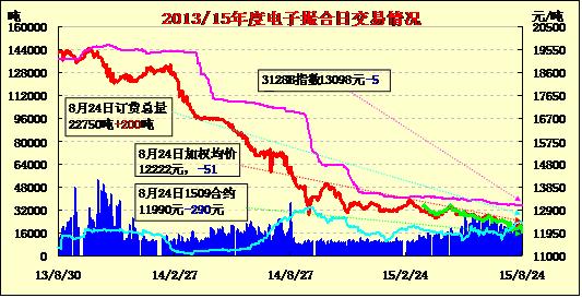 8月24日 電子撮合交易成交15350噸,較上一交易日減少140噸。訂貨量增加200噸,累計訂貨22750噸。交易各合同開盤高低不一,盤中震蕩下跌,除MA1510、MA1602合同外,其余合同均價普跌。國內(nèi)棉花現(xiàn)貨市場價格振蕩下跌,弱勢局面延續(xù),優(yōu)質(zhì)貨源看漲意愿較強(qiáng),市場等待新棉直補(bǔ)細(xì)則。全棉紗延續(xù)調(diào)整走勢,進(jìn)口紗占優(yōu)勢,地產(chǎn)棉紗沒有大批量訂單。紡織下游采購積極性一般,維持小單補(bǔ)貨節(jié)奏。