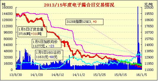 1月5日,電子撮合交易低開低走,近月合同多減量下行,遠(yuǎn)月買盤雖報(bào)價(jià)積極但與賣盤價(jià)差較大,成交仍弱。價(jià)差趨勢(shì)上,現(xiàn)貨掛牌近月MA1601和鄭棉CF1601收盤價(jià)差擴(kuò)至160元/噸?,F(xiàn)貨基本面繼續(xù)偏弱:目前市場(chǎng)價(jià)格趨弱,成交觀望情緒較濃;價(jià)格上,內(nèi)地庫疆棉手摘3128B級(jí)價(jià)格在13100-13200元/噸,地產(chǎn)棉質(zhì)量不同價(jià)格在12600-13200元/噸。近期整體商家普遍認(rèn)為降價(jià)力度將進(jìn)一步加大,部分商家表示將盡力在春節(jié)前清理庫存回家過年。而下游方面,紗廠為保現(xiàn)金流,多數(shù)限產(chǎn),降低棉花的采購量,整體交易量逐步萎縮。