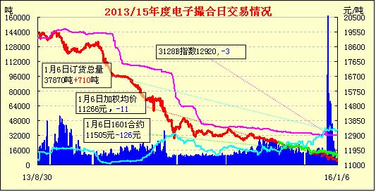 1月6日,電子撮合延續(xù)弱勢,近月合同跌幅放大,遠月合同抗跌性強于近月。價差趨勢上,現(xiàn)貨掛牌近月MA1601和鄭棉CF1601收盤價差擴至300元/噸?,F(xiàn)貨基本面繼續(xù)偏弱:市場繼續(xù)觀望,進口棉市場零星成交,價格小降,美棉SM1-1/8價格在14300-14500元/噸,澳棉SM1-5/32價格在15700-16000元/噸,部分貿(mào)易商清理庫存心態(tài)占主導,港口庫存小幅下降,而部分貿(mào)易商認為,新年度配額即將下發(fā)并可使用,其將預定部分船貨以銷售。下游棉紗市場交易繼續(xù)冷清,廠家對后市看淡心態(tài)濃重。