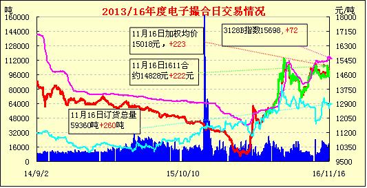 11月16日,電子撮合交易成交量增加,合約均價全部收漲,活躍交投主要集于中遠(yuǎn)月合同。近日,盡管業(yè)內(nèi)對未來棉市走向無法評估預(yù)料,但各地籽棉收購報價依然高企,部分地區(qū)甚至高出了九月中下旬開秤之初的報價。據(jù)了解,江蘇鹽城一帶標(biāo)準(zhǔn)級籽棉38%以上衣分的,收購企業(yè)打出的門市收購價為7.40元左右一公斤,并附有“量大價格面議”的承諾。當(dāng)前,籽棉報價比上年同期高出25%,其它地區(qū)籽棉收購報價也不同程度地上調(diào)。