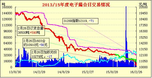 2月25日,電子撮合交易大幅續(xù)跌,2月26日,電子撮合交易訂貨增加,均價續(xù)跌。現(xiàn)貨掛牌近月合同均價與中國棉花價格指數(shù)價差擴至1209元/噸。受市場輪出傳言不斷,價格呈現(xiàn)陰跌,及看空后市情況下,鄭棉期貨出現(xiàn)暴跌,創(chuàng)下歷史新低,1701合約跌破萬元關(guān)口。而具體棉花現(xiàn)貨市場看,長絨棉市場需求不振,報價疲軟,137A級內(nèi)地庫報價至22600-22800元/噸水平,雖詢價略增多,但買賣雙方意向價略有差距,實際成交有限。因前期新疆移庫內(nèi)地較多,供應(yīng)壓力凸顯。山東等地2128C2級手摘價格在12600-12700元/噸,但報價較多,買家響應(yīng)寥寥。全棉紗市場價格疲軟,周邊廠家散批量成交送貨略增加,常規(guī)OEC21S、C32S交易略多,滌棉紗局部整理。人棉紗價格受原料粘膠價格影響出現(xiàn)上浮。