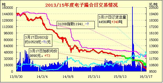 3月17日,電子撮合交易成交量16590噸,較上一交易日增加5030噸。訂貨量增加340噸,累計訂貨44560噸。今日電子撮合交易各合同開盤均價高低不一,盤中各合同均價震蕩為主,尾盤遠(yuǎn)月合同均價小幅收漲。目前棉花庫存高企,儲備棉輪出預(yù)期增強(qiáng),儲備棉輪出價格預(yù)期大幅下降,且下游需求依舊疲弱;紡織方面,國內(nèi)紗、布市場成交冷清,紗價小幅下跌,滌綸短纖價格延續(xù)漲勢,且漲幅擴(kuò)大。粘膠市場總體供需結(jié)構(gòu)良好,且粘膠廠有前期訂單支撐,價格或延續(xù)走高。