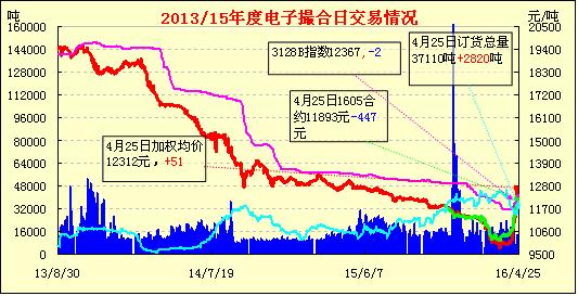 4月25日,電子撮合交易量倉同增,均價漲跌互現(xiàn),近月賣盤掛單積極?,F(xiàn)貨掛牌近月合同均價與鄭棉近月合約價差547元。受發(fā)改委、交易所等風(fēng)險警示或控制棉價過快上漲,現(xiàn)貨市場雖價格堅挺,但追漲氣氛明顯減淡,河北地區(qū)地產(chǎn)3128B報價在12200-12500元/噸公定自提,4128B級在11800-12000元/噸,商家?guī)齑娌欢嘞坌膽B(tài)較濃。且據(jù)儲備棉輪出僅剩最后一周時間,紡織企業(yè)觀望等待儲備棉輪出心態(tài)增濃。全棉紗行情有所向好,但總體改觀一般,期貨市場的炒作并未對現(xiàn)貨市場有多大幫助,市場依然如履薄冰,多持謹慎態(tài)度。