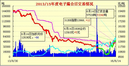 6月14日,電子撮合交易倉(cāng)量大增,各合同均價(jià)近漲遠(yuǎn)跌,盤中交投活躍集中在中、遠(yuǎn)月合同中。6月13日,山東省發(fā)布雷電黃色預(yù)警,各地普降雨水。聊城地區(qū)氣溫在20-32℃,下午開(kāi)始始天氣轉(zhuǎn)陰,后降中雨,暫時(shí)緩解了棉田的旱情。調(diào)查獲悉,麥?zhǔn)臻_(kāi)始后,當(dāng)?shù)靥鞖鈺r(shí)陰時(shí)晴,但雨水遲遲未下,13日,當(dāng)?shù)佧準(zhǔn)展ぷ骰窘Y(jié)束,部分地塊陸續(xù)澆水,做播種玉米的準(zhǔn)備。當(dāng)?shù)孛藁ǚN植面積已不多,大家主要以小麥、玉米種植為主,大塊地集中種植者更為稀少,棉花主要以零散地塊和房前屋后種植為主,因種植時(shí)間不同,土地質(zhì)量迥異,當(dāng)?shù)?a href='http://www.qdhqly.cn/News/Channel/?CID=31' title='更多棉花信息' target='_blank'>棉花長(zhǎng)勢(shì)略有參差,目前株高分化明顯,管理較好地塊株高在40-50厘米,已有現(xiàn)蕾之意,一般者在30厘米左右,多為八葉一心。中雨到來(lái),給處于干旱的棉田帶來(lái)勃勃生機(jī)。