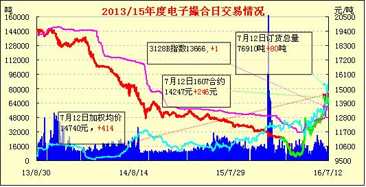 7月12日,電子撮合交易縮量增倉(cāng),均價(jià)全線收漲,交投活躍集中在中、遠(yuǎn)月合同中并接近15000元/噸。棉花現(xiàn)貨市場(chǎng)堅(jiān)挺,個(gè)別商家準(zhǔn)備售完手中部分單子后就準(zhǔn)備漲價(jià),目前一商家2328級(jí)報(bào)價(jià)在14200元/噸。今日外棉到港報(bào)價(jià)上漲。印度棉Shankar-6 電子撮合交易1-5/32報(bào)價(jià)77.75美分/磅漲1.75美分,折滑準(zhǔn)稅下報(bào)價(jià)在14761元/噸漲178元,1%配額稅下港口自提報(bào)價(jià)13112元/噸漲291元。