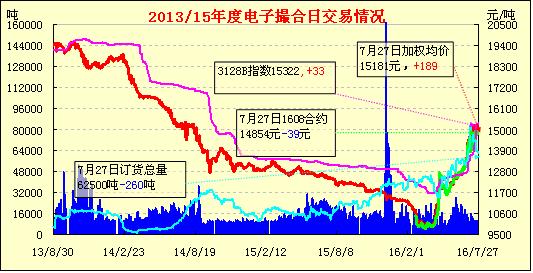 | 合約 | 開盤價(jià) | 最高價(jià) | 最低價(jià) | 收盤價(jià) | 平均價(jià) | 成交量 | 訂貨量 | ||||