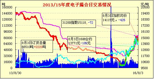 8月3日,電子撮合交易倉量齊增,均價全線收跌,交投活躍集中在近月合同中。現(xiàn)貨市場走貨走貨相對一般,且隨著拍儲成交率的下降,商家出貨心態(tài)增濃,特別是一些庫存較多的商家報價小幅下調(diào),3128B北疆機采棉報價至14200-14700元/噸,紡企響應(yīng)仍相對不多。長絨棉市場維持,價格微微上浮,137級到廠主流價格在21300元/噸,237級主流在20500元/噸左右。