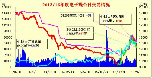 9月2日,電子撮合交易縮量減倉,均價多數(shù)收陽線,交投活躍集中在近月合同中?,F(xiàn)貨市場調(diào)整為主,儲備棉轉(zhuǎn)售占據(jù)主導(dǎo),地產(chǎn)國儲轉(zhuǎn)讓價格在13000元/噸上下水平。長絨棉市場弱勢,且新年度產(chǎn)量預(yù)期增加,后期陳棉銷售壓力較大,目前山東等地137級價格在20700-21200元/噸,237級價格在19900-20300元/噸。進口棉市場調(diào)整,整體量不多,一商家澳棉SM1-5/32報價在16000元/噸左右,實際商談略有優(yōu)惠,有個別高支紗廠家因澳棉價高而采購部分烏棉代替。