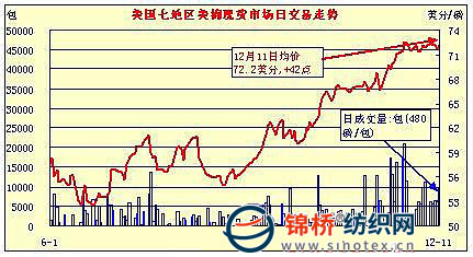 錦橋紡織網(wǎng)—資訊頻道> 棉花信息> 美棉現(xiàn)貨>正文 美國棉花現(xiàn)貨市場行情(12-11)