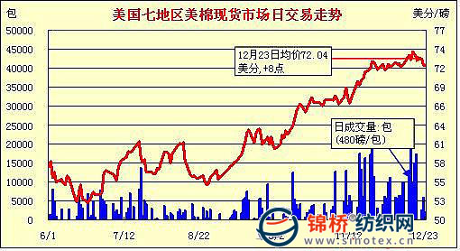 錦橋紡織網(wǎng)—資訊頻道> 棉花信息> 美棉現(xiàn)貨>正文 美國棉花現(xiàn)貨市場行情(12-23)