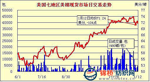 錦橋紡織網(wǎng)—資訊頻道> 棉花信息> 美棉現(xiàn)貨>正文 美國棉花現(xiàn)貨市場行情(1-12)
