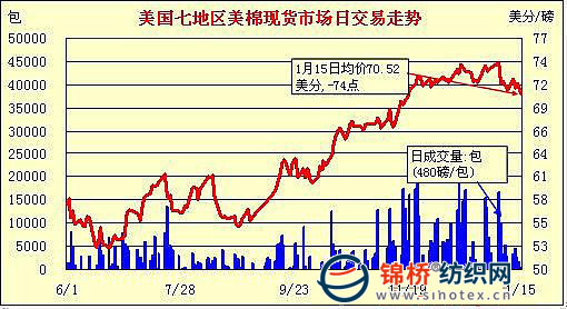 錦橋紡織網(wǎng)—資訊頻道> 棉花信息> 美棉現(xiàn)貨>正文 美國棉花現(xiàn)貨市場行情(1-15)