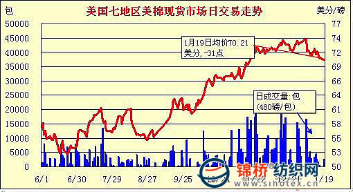 錦橋紡織網(wǎng)—資訊頻道> 棉花信息> 美棉現(xiàn)貨>正文 美國(guó)棉花現(xiàn)貨市場(chǎng)行情(1-19)