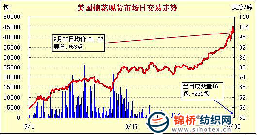美國棉花現(xiàn)貨市場行情(10-9-30)