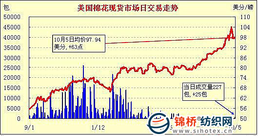 美國棉花現(xiàn)貨市場(chǎng)行情(10-10-5)