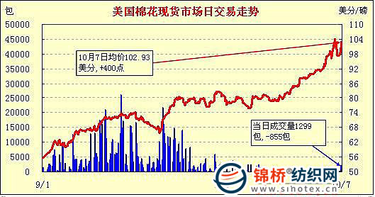 美國(guó)棉花現(xiàn)貨市場(chǎng)行情(10-10-7)