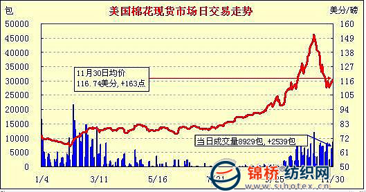 錦橋紡織網(wǎng)—資訊頻道> 棉花信息> 美棉現(xiàn)貨>正文 美國棉花現(xiàn)貨市場(chǎng)行情(10-11-30)