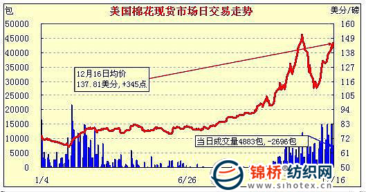 錦橋紡織網(wǎng)—資訊頻道> 棉花信息> 美棉現(xiàn)貨>正文 美國棉花現(xiàn)貨市場行情(10-12-16)