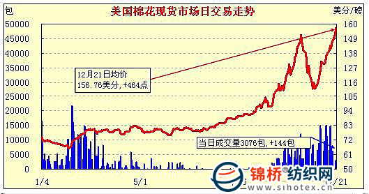 錦橋紡織網(wǎng)—資訊頻道> 棉花信息> 美棉現(xiàn)貨>正文 美國棉花現(xiàn)貨市場行情(10-12-21)