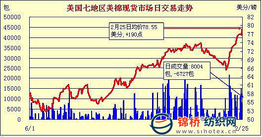 錦橋紡織網(wǎng)—資訊頻道> 棉花信息> 美棉現(xiàn)貨>正文 美國棉花現(xiàn)貨市場行情(2-25)