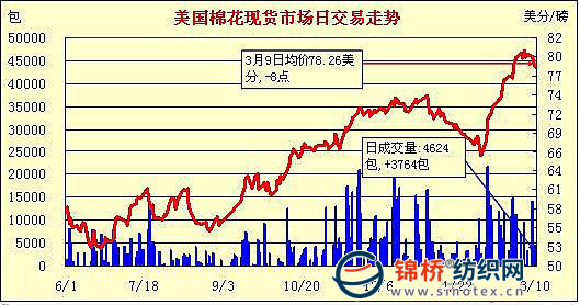 錦橋紡織網(wǎng)—資訊頻道> 棉花信息> 美棉現(xiàn)貨>正文 美國棉花現(xiàn)貨市場行情(3-10)
