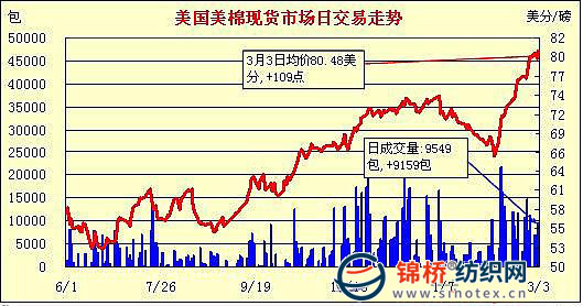 錦橋紡織網(wǎng)—資訊頻道> 棉花信息> 美棉現(xiàn)貨>正文 美國棉花現(xiàn)貨市場行情(3-3)