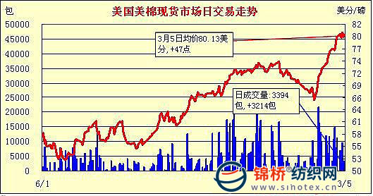 錦橋紡織網(wǎng)—資訊頻道> 棉花信息> 美棉現(xiàn)貨>正文 美國棉花現(xiàn)貨市場行情(3-5)