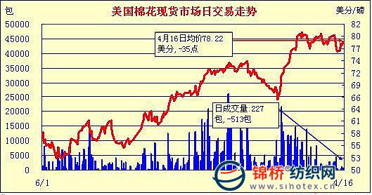錦橋紡織網(wǎng)—資訊頻道> 棉花信息> 美棉現(xiàn)貨>正文 美國棉花現(xiàn)貨市場行情(4-16)