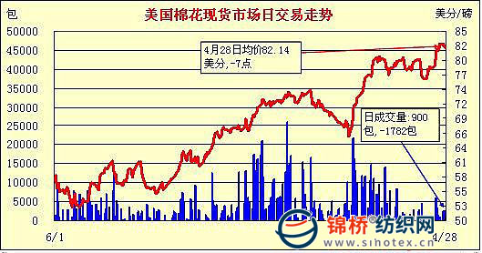 錦橋紡織網(wǎng)—資訊頻道> 棉花信息> 美棉現(xiàn)貨>正文 美國棉花現(xiàn)貨市場行情(4-28)