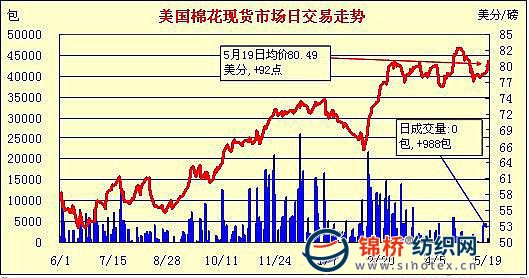 錦橋紡織網(wǎng)—資訊頻道> 棉花信息> 美棉現(xiàn)貨>正文 美國棉花現(xiàn)貨市場行情(5-19)