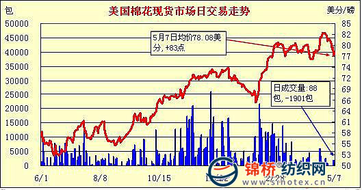 錦橋紡織網(wǎng)—資訊頻道> 棉花信息> 美棉現(xiàn)貨>正文 美國棉花現(xiàn)貨市場行情(5-7)