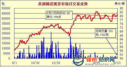 錦橋紡織網(wǎng)—資訊頻道> 棉花信息> 美棉現(xiàn)貨>正文 美國棉花現(xiàn)貨市場(chǎng)行情(6-23)