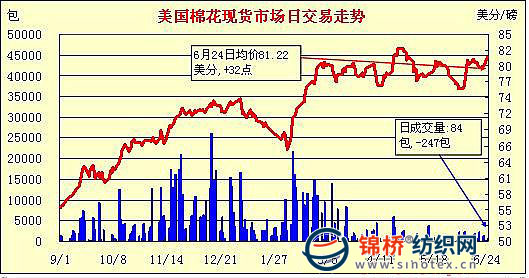 錦橋紡織網(wǎng)—資訊頻道> 棉花信息> 美棉現(xiàn)貨>正文 美國棉花現(xiàn)貨市場行情(6-24)