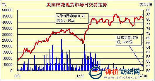 錦橋紡織網(wǎng)—資訊頻道> 棉花信息> 美棉現(xiàn)貨>正文 美國棉花現(xiàn)貨市場行情(6-30)