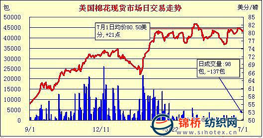 錦橋紡織網(wǎng)—資訊頻道> 棉花信息> 美棉現(xiàn)貨>正文 美國棉花現(xiàn)貨市場行情(7-1)