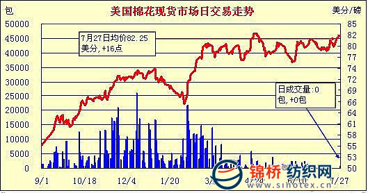 錦橋紡織網(wǎng)—資訊頻道> 棉花信息> 美棉現(xiàn)貨>正文 美國棉花現(xiàn)貨市場行情(10-7-27)