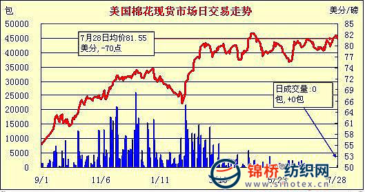 錦橋紡織網(wǎng)—資訊頻道> 棉花信息> 美棉現(xiàn)貨>正文 美國棉花現(xiàn)貨市場行情(10-7-28)