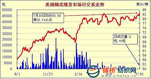 錦橋紡織網(wǎng)—資訊頻道> 棉花信息> 美棉現(xiàn)貨>正文 美國棉花現(xiàn)貨市場行情(10-7-30)