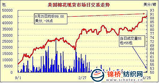錦橋紡織網—資訊頻道> 棉花信息> 美棉現(xiàn)貨>正文 美國棉花現(xiàn)貨市場行情(10-8-25)