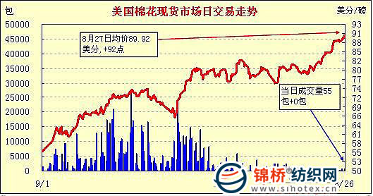 錦橋紡織網(wǎng)—資訊頻道> 棉花信息> 美棉現(xiàn)貨>正文 美國棉花現(xiàn)貨市場行情(10-8-26)