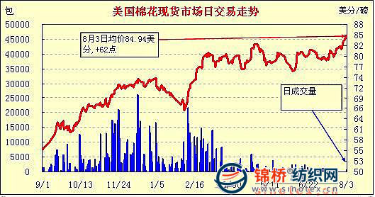 錦橋紡織網(wǎng)—資訊頻道> 棉花信息> 美棉現(xiàn)貨>正文 美國棉花現(xiàn)貨市場行情(10-8-3)