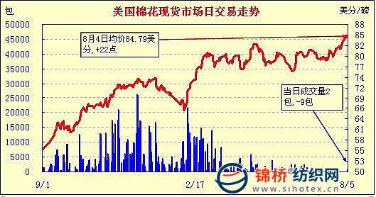 錦橋紡織網(wǎng)—資訊頻道> 棉花信息> 美棉現(xiàn)貨>正文 美國棉花現(xiàn)貨市場行情(10-8-5)