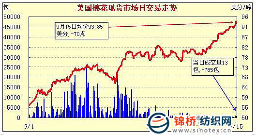 錦橋紡織網(wǎng)—資訊頻道> 棉花信息> 美棉現(xiàn)貨>正文 美國棉花現(xiàn)貨市場行情(10-9-15)