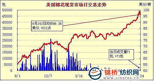 錦橋紡織網(wǎng)—資訊頻道> 棉花信息> 美棉現(xiàn)貨>正文 美國棉花現(xiàn)貨市場行情(10-9-24)