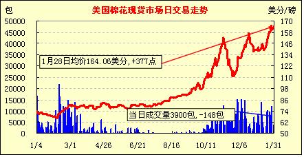 美國棉花現(xiàn)貨市場行情(11-1-31)