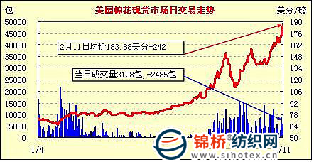 錦橋紡織網(wǎng)—資訊頻道> 棉花信息> 美棉現(xiàn)貨>正文 美國棉花現(xiàn)貨市場行情(11-2-11)